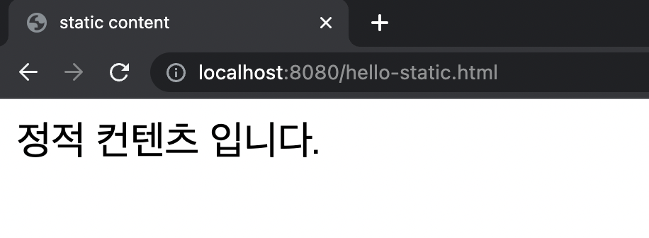 - 해당 컨트롤러가 없으므로, resources의 static에서 hello-static.html을 찾는다.