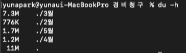 디렉토리 이름을 지정하지 않으면, 현재 디렉토리 기준으로 디스크 사용량을 출력