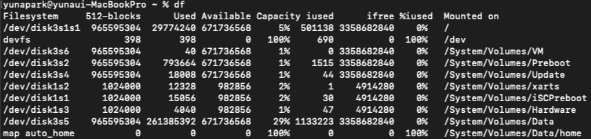 리눅스 시스템 전체의 (마운트 된) 디스크 사용량 확인