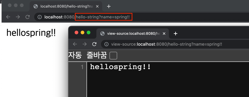 localhost:8080/hello-string?name=spring!!