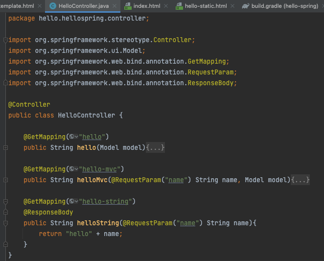 1. HelloController.java에서 helloString 메소드를 작성한다.