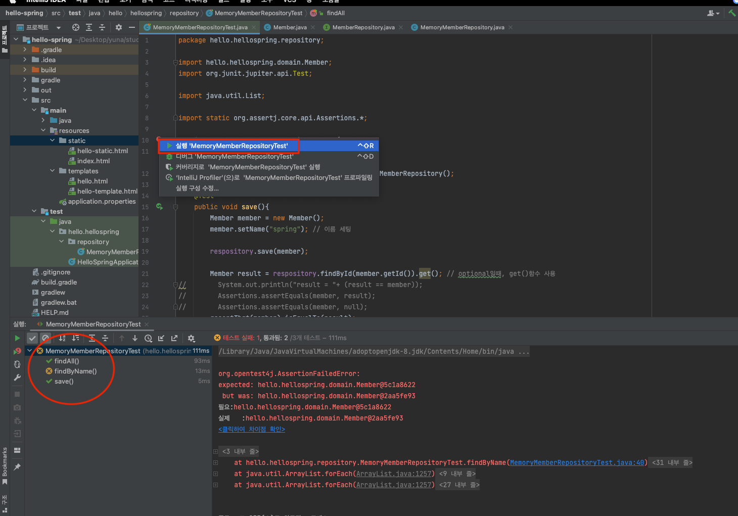 ▷ findByName() 함수 테스트 케이스 작성