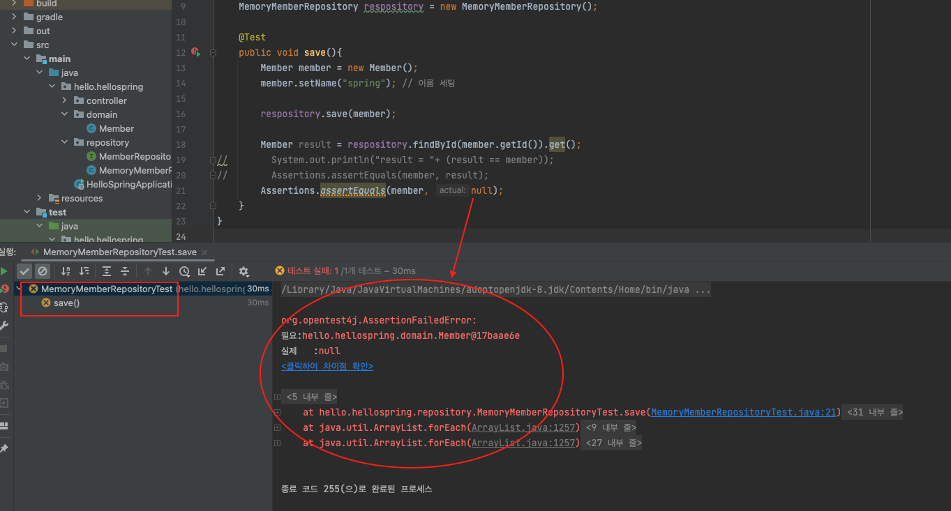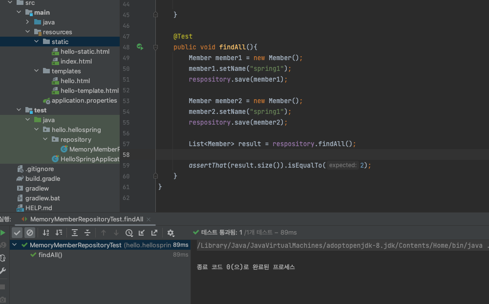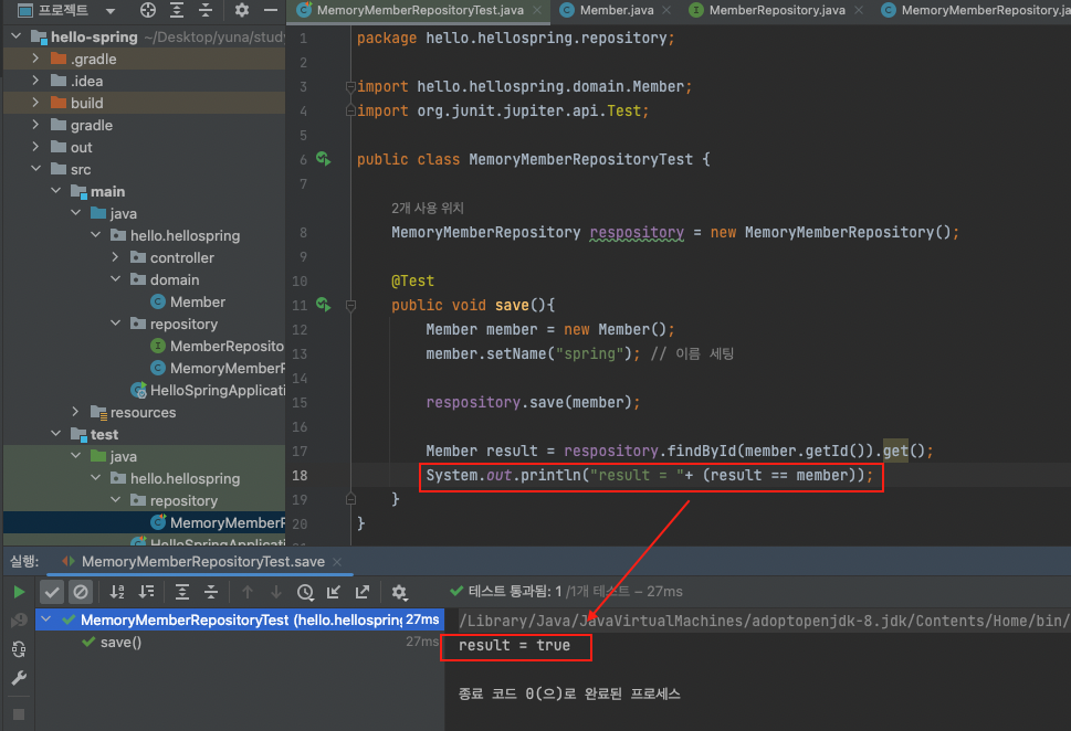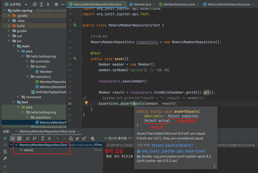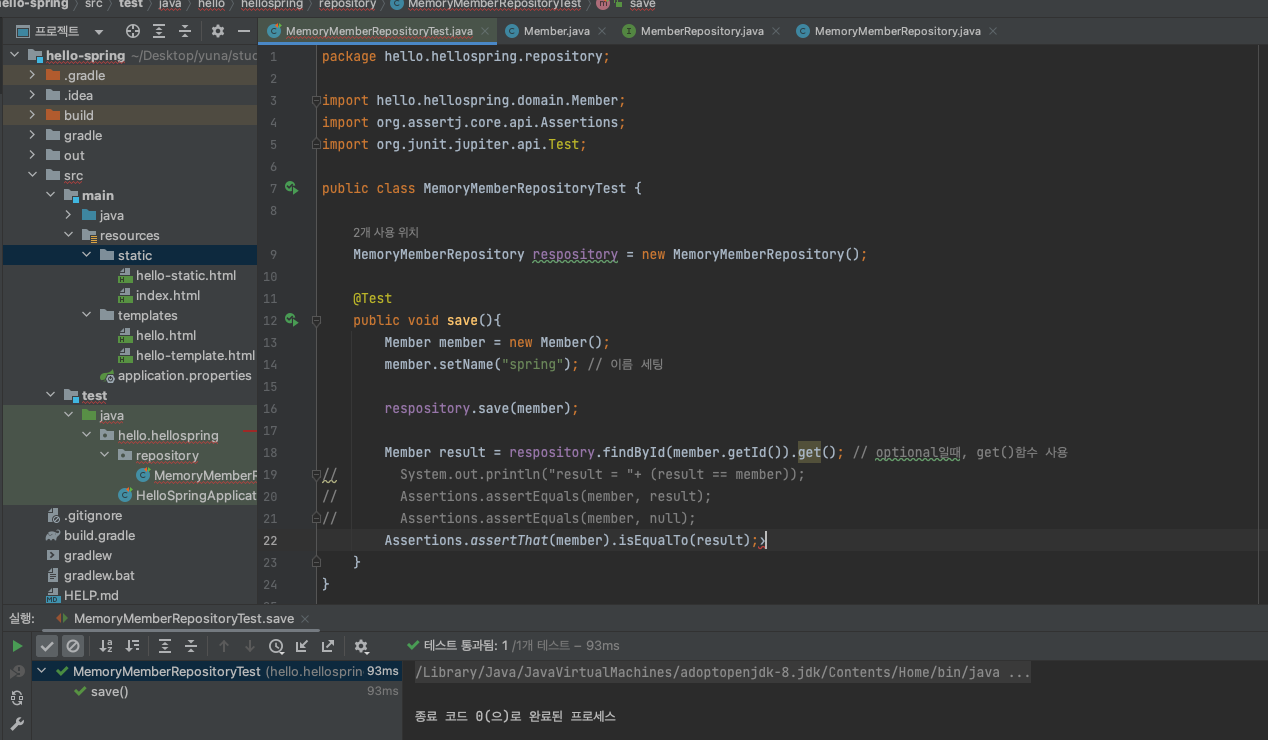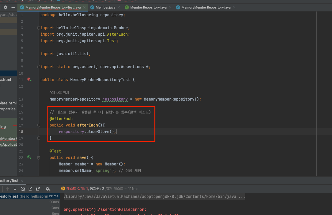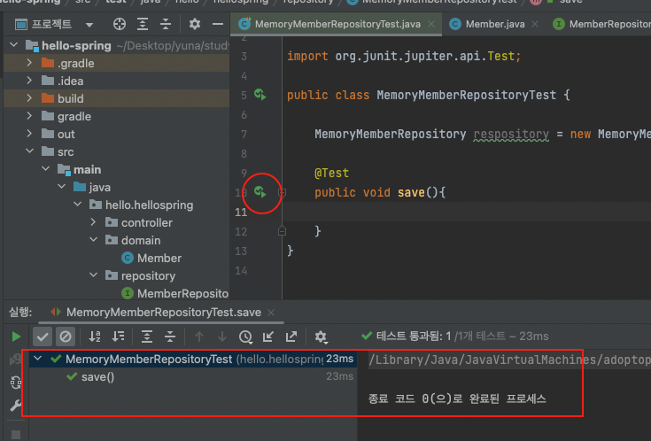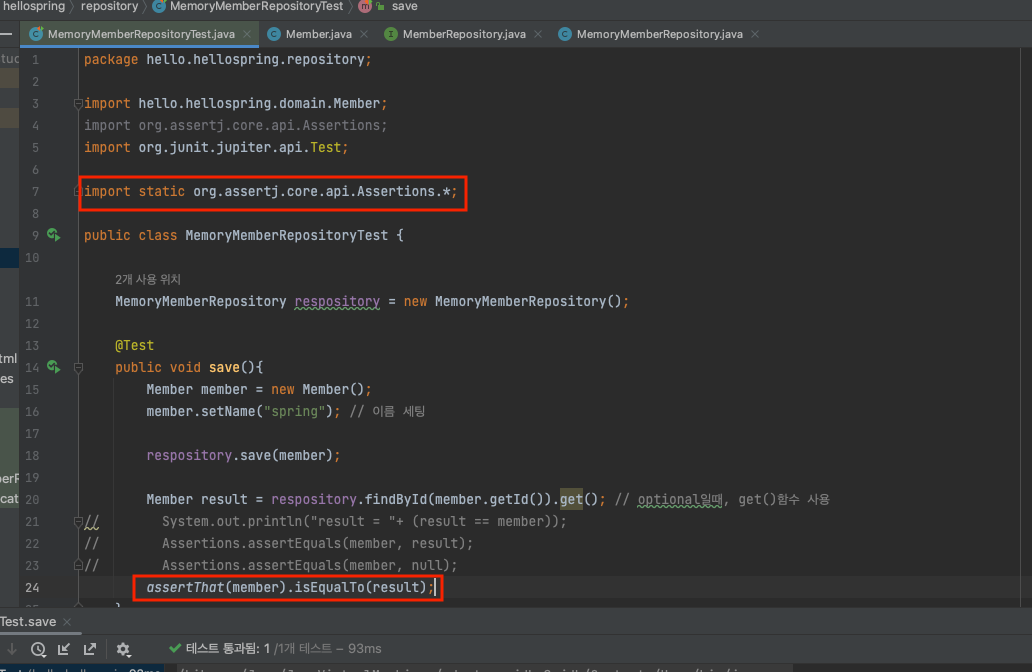 ▶ MemoryMemberRepositoryTest 코드 작성