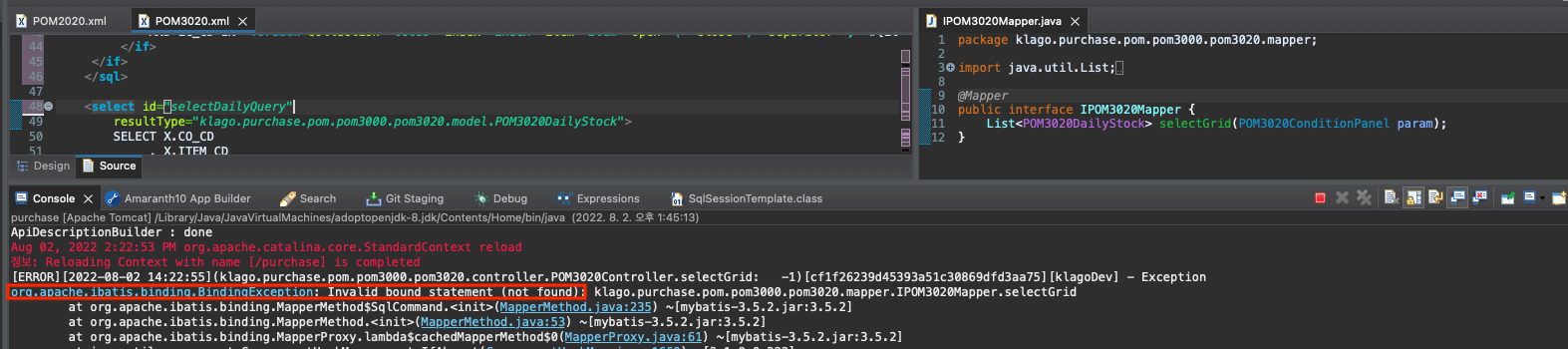 결론적으로, Mapper에 선언된 함수를 찾을 수 없다는...