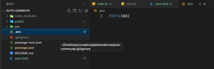 다음과 같이 최상위 위치에 .env 파일을 만들어서 작성하면 된다.