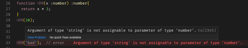 타입 지정한 함수 예시타입 에러가 난 함수 예시