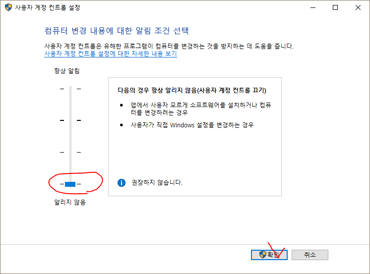4. 알리지 않음으로 설정 후 확인