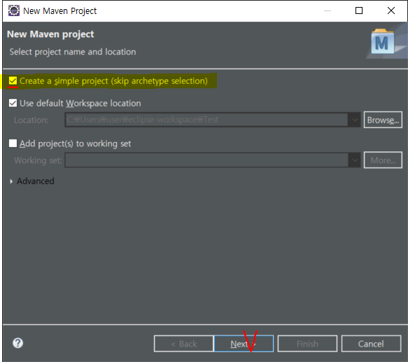 File > New > Maven Project 를 누른다.첫번째 체크 박스를 클릭 후, Next 한다. 항상 첫글자는 대문자로(암묵적인 약속) 작성한 후, Finish를 클릭JRE System Library 에서 우클릭 후, Properties를 클릭System library에서 Excution environment를 1.6으로 수정한 후, Apply and Close를 클릭그러면, JRE System Library 오른쪽 주황색 글자가 다음과 같이 변경된다.