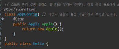 @Configuration을 선언한다. 스프링 환경 설정 클래스라는 것을 알려주는 용도로 사용한다.